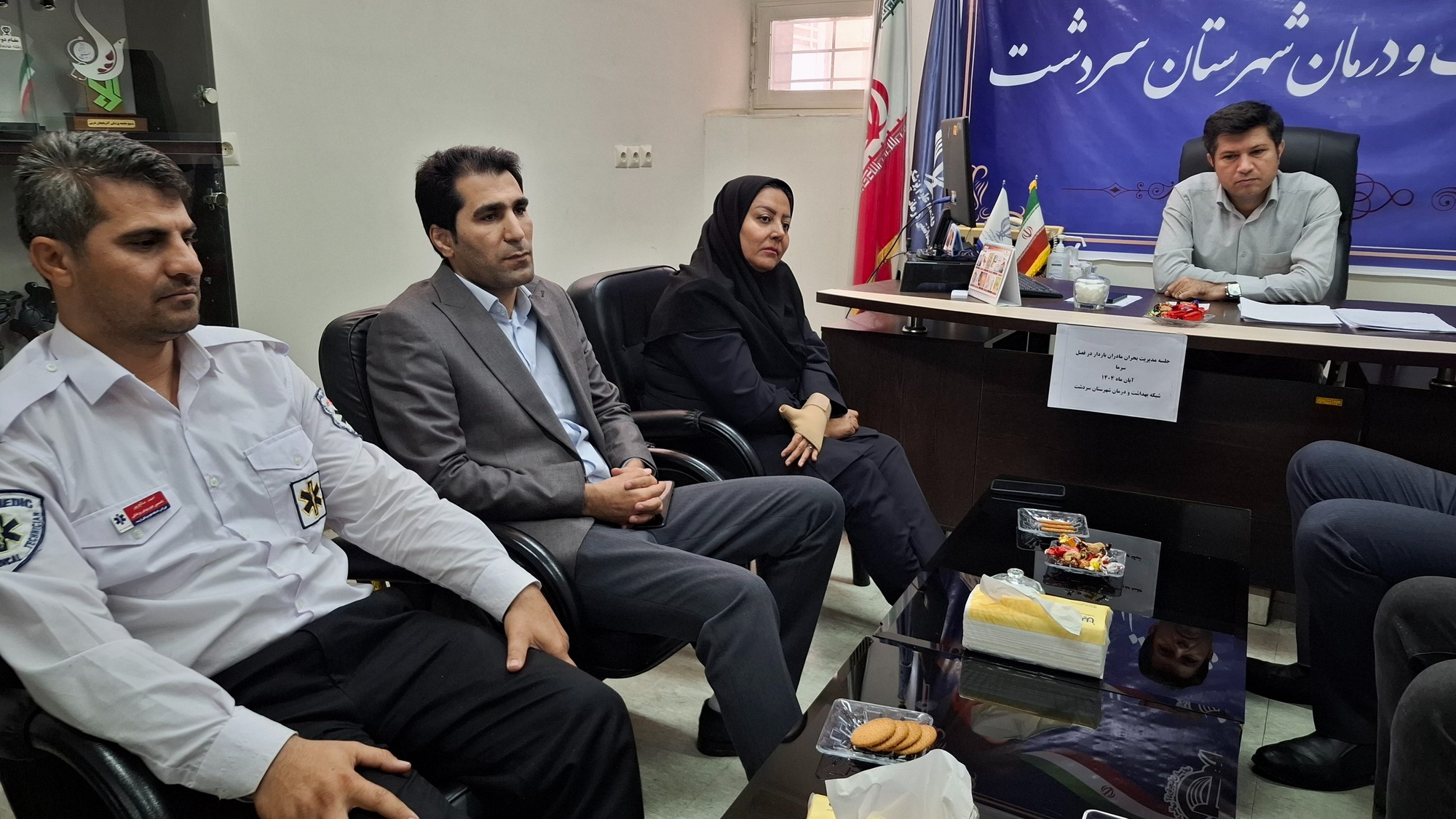 به گزارش محمدی مسئول روابط عمومی این جلسه با حضور سرپرست شبکه بهداشت و درمان، رئیس مرکز بهداشت، رئیس اداره امور عمومی، کارشناس مسئول واحد بهداشت خانواده، مترون بیمارستان امام خمینی، مسئول فوریت‌های پزشکی و مسئول واحد نقلیه تشکیل گردید.