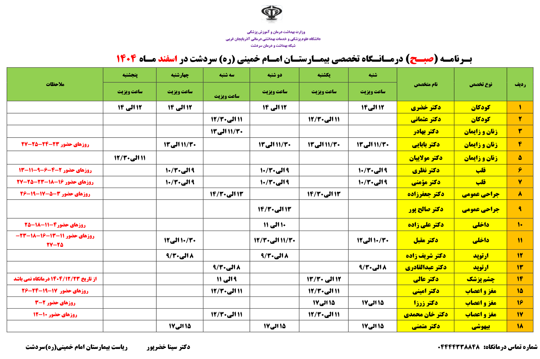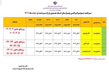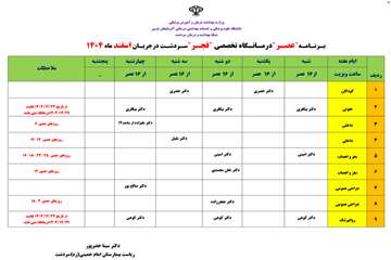 برنامه اسفند ماه درمانگاههای تخصصی