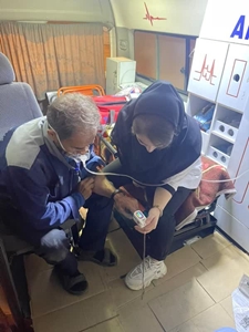 بلافاصله بیمار به داخل آمبولانس منتقل شد و روژینا رستم‌نژاد، مامای همراه تیم درمان، اقدامات اولیه شامل اکسیژن‌تراپی، سنجش سطح اکسیژن خون و تجویز داروی مناسب را انجام داد.